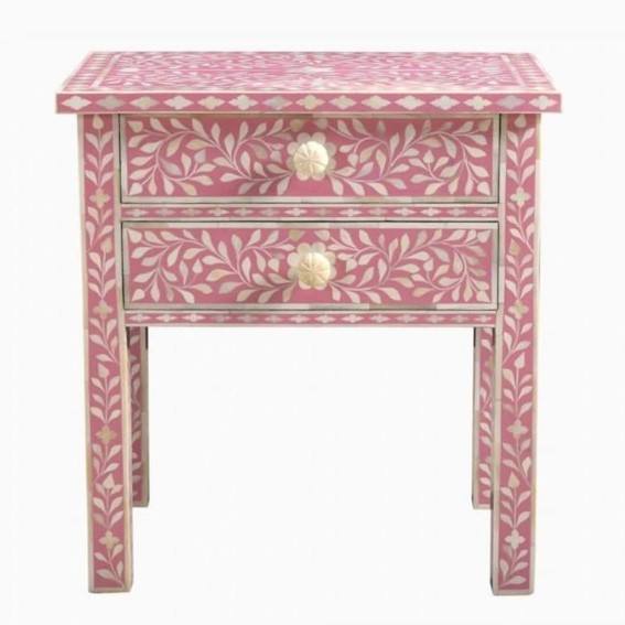 Tocador con incrustaciones de mopa, cajón pequeño esquinero con incrustaciones de perla Madre, mesa de tocador con 2 cajones de hueso