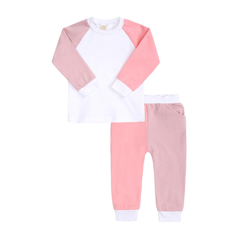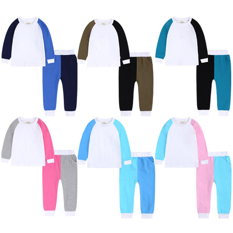 Conjunto de Pijama de Algodón para Niñas Pequeñas, Más de 18 Colores, Último Modelo, Dos Piezas, Manga Larga, Pantalones Deportivos, Bicolor
