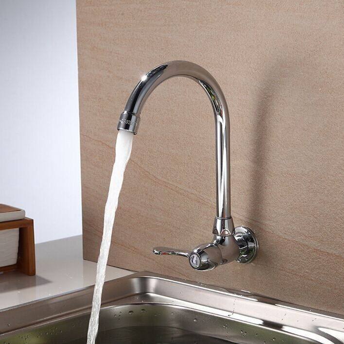 Grifo de Agua Fría Horizontal de Pared Morning Dew, Grifo de Cocina de Apertura Rápida de 4 Puntos