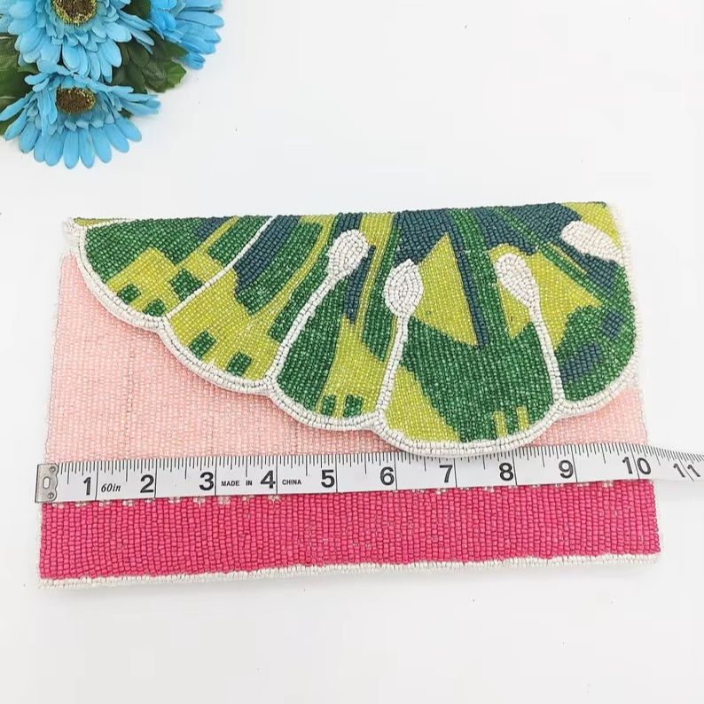 Bolso marroquí con cuentas, Floral 3D bolso de hombro, monedero hecho a mano de flor rosa, monedero de hombro colorido para fiesta de noche para funciones