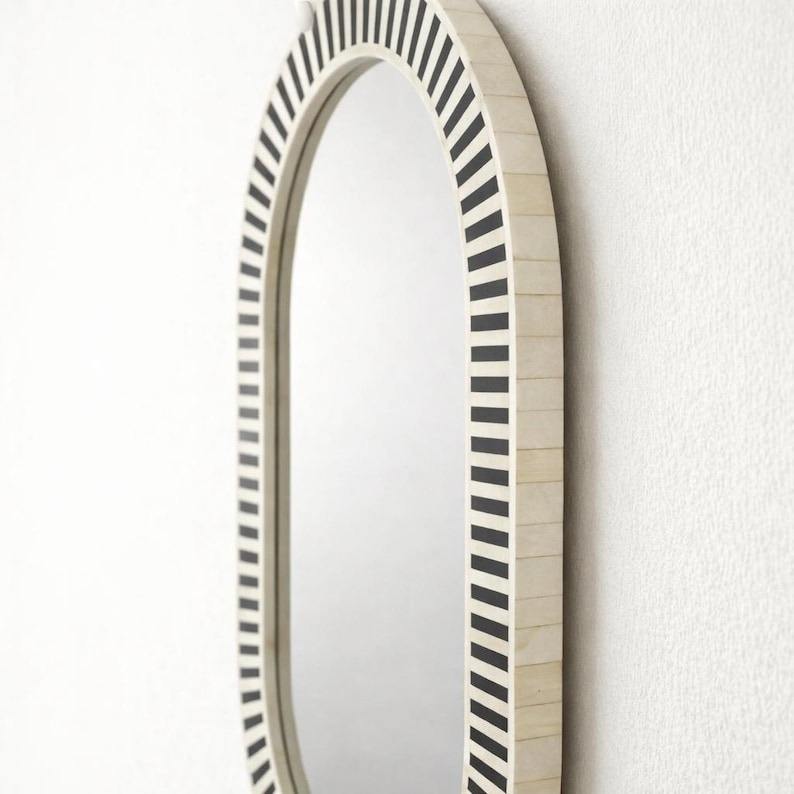 Espejo de Pared con Incrustaciones de Hueso de Diseño Marroquí, Pieza de Arte Hecha a Mano