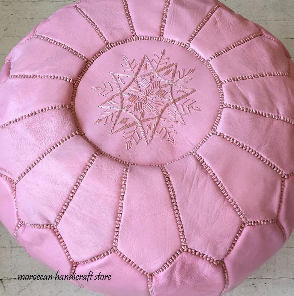 Marroquí otomano reposapiés en cuero Real hecho a mano cosida en Marruecos