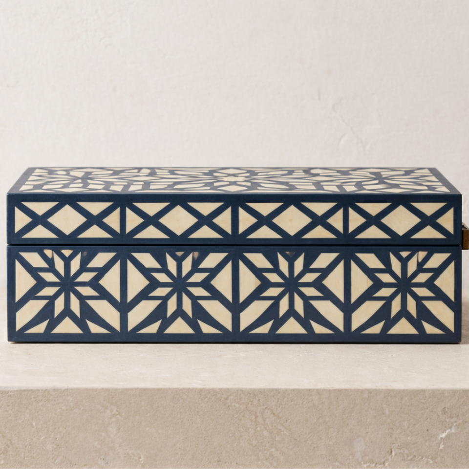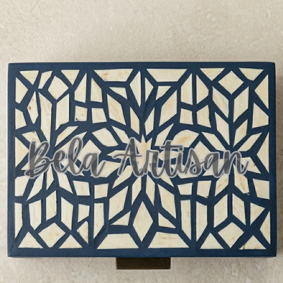 Caja Organizadora de Joyas con Incrustaciones de Estrellas Marroquíes, Cofre de Recuerdos con Marquetería de Hueso, Forro de Gamuza Sintética, Capacidad de 2 kg, para Sala de Estar, Lujo
