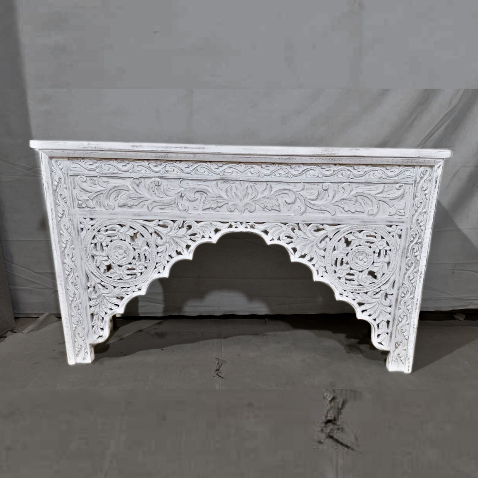 Mesa Consola de madera de mango lavado blanco tallado estilo marroquí acabado desgastado para entrada Villa u Hotel muebles de sala de estar