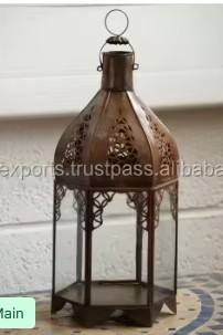 Linterna de metal de estilo marroquí con paneles de vidrio Lámpara decorativa colgante elegante para el ambiente del hogar y el jardín