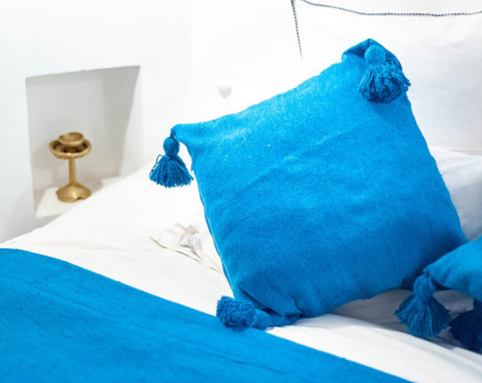 Moroccan Teal Pompom Throw Blanket