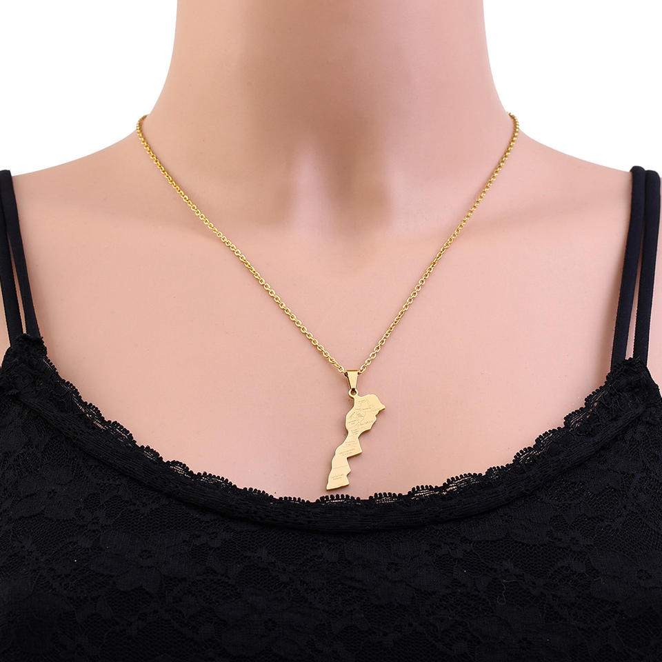 Marruecos esmalte mapa nacional banderas impermeable no deslustre Acero inoxidable joyería collares colgante al por mayor para Mujeres Hombres
