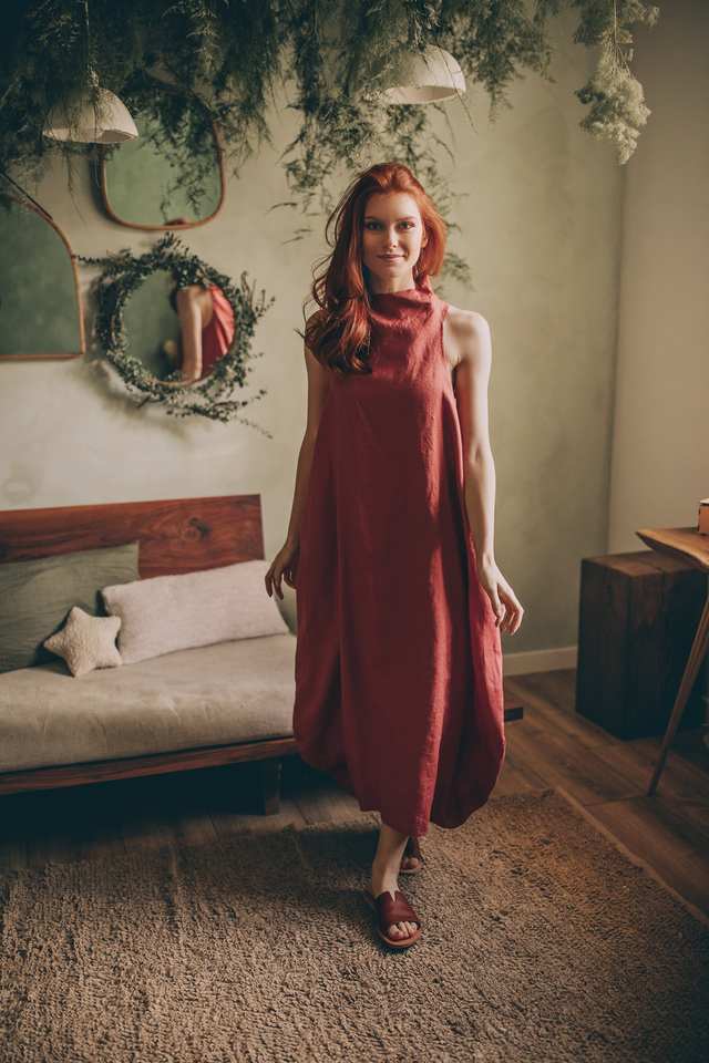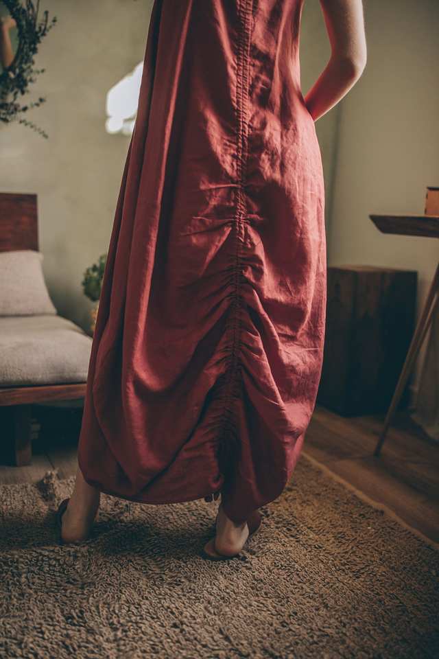 Nombre del producto:Vestido MIDI rojo marroquí de lino