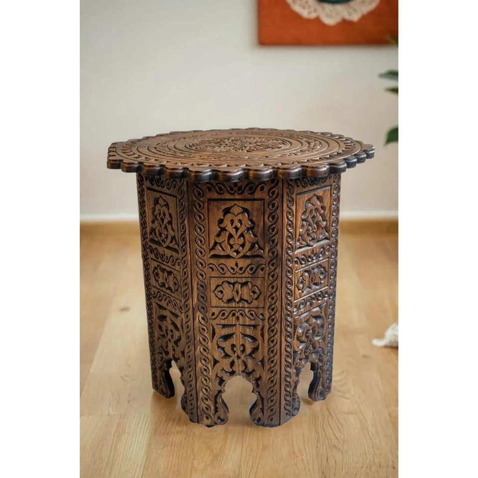 Mesa de Centro Moroco Hecha de Madera de Teca Sólida de Alta Calidad en Color Marrón Oscuro para Muebles de Sala de Estar