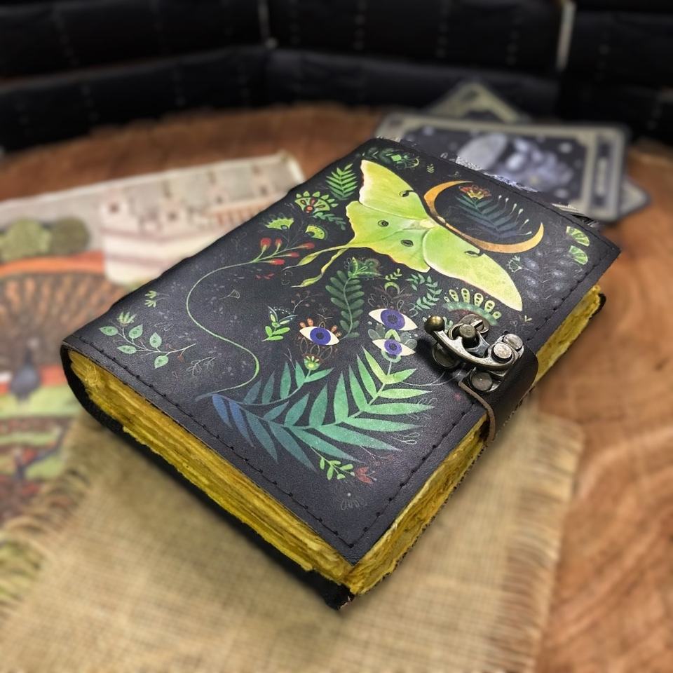 Morpho Butterfly Print Journal Diario de cuero de grano completo con Deckle Edge Papers C-Lock Cierre Diario Libros