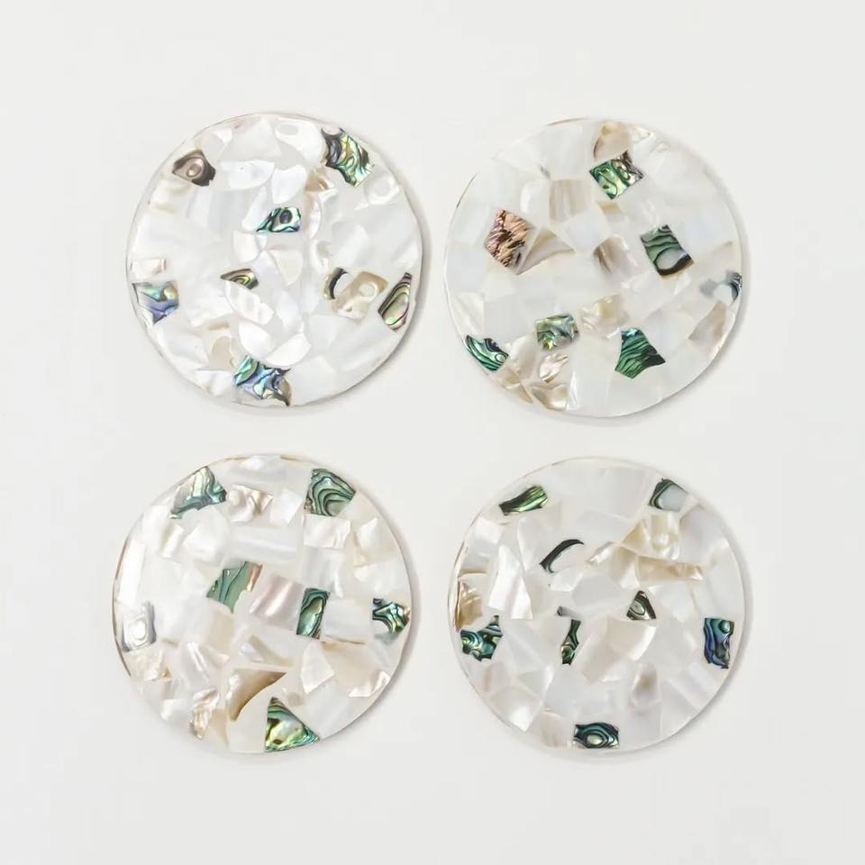 Posavasos de concha de Capiz de mosaico, vajilla MOP hecha a mano, posavasos decorativo de nácar para bebidas