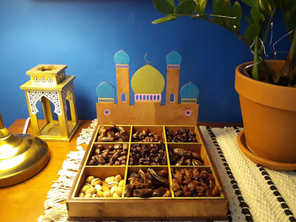 Bandeja de Ramadán de columna de estilo mezquita con elegante diseño islámico perfecto para Iftar fechas dulces té y decoración festiva de mesa