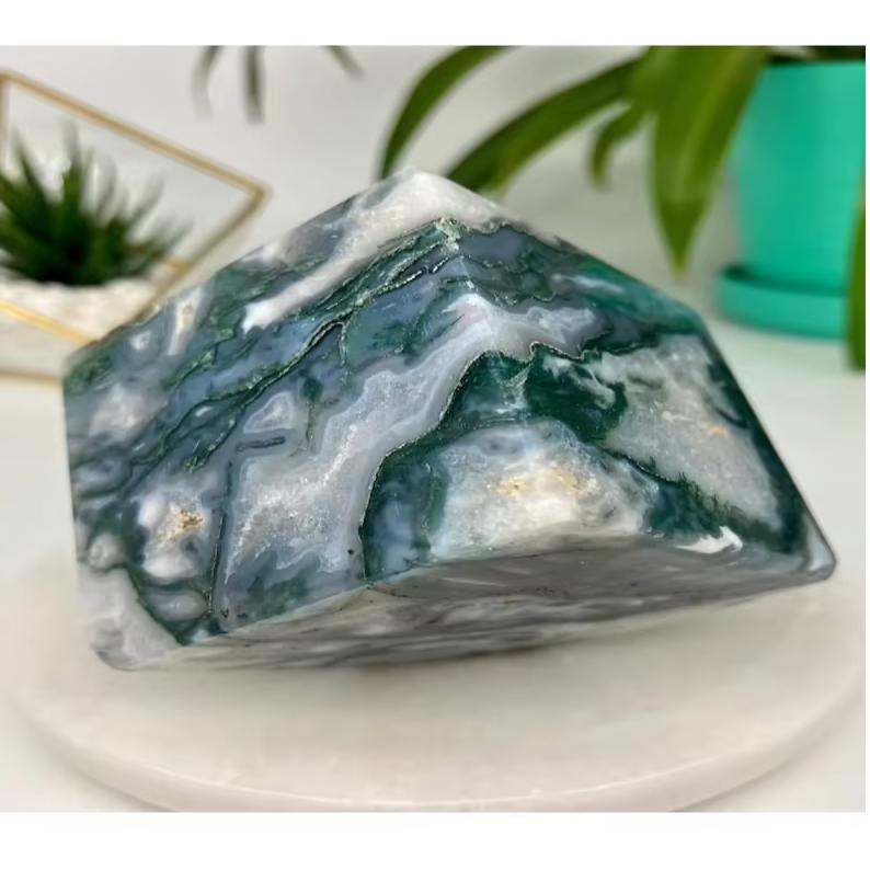 Cubo de ágata musgo, losa de ágata semipreciosa hecha a mano con tonos terrosos, estilo interior perfecto y colecciones de cristal personales