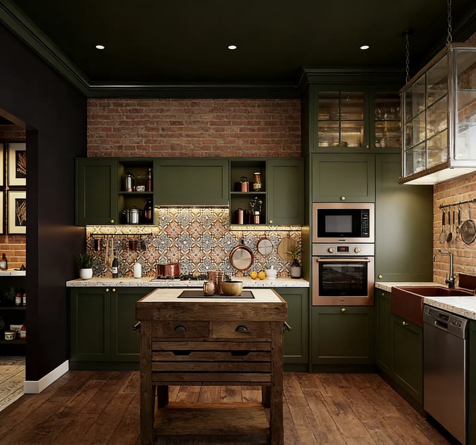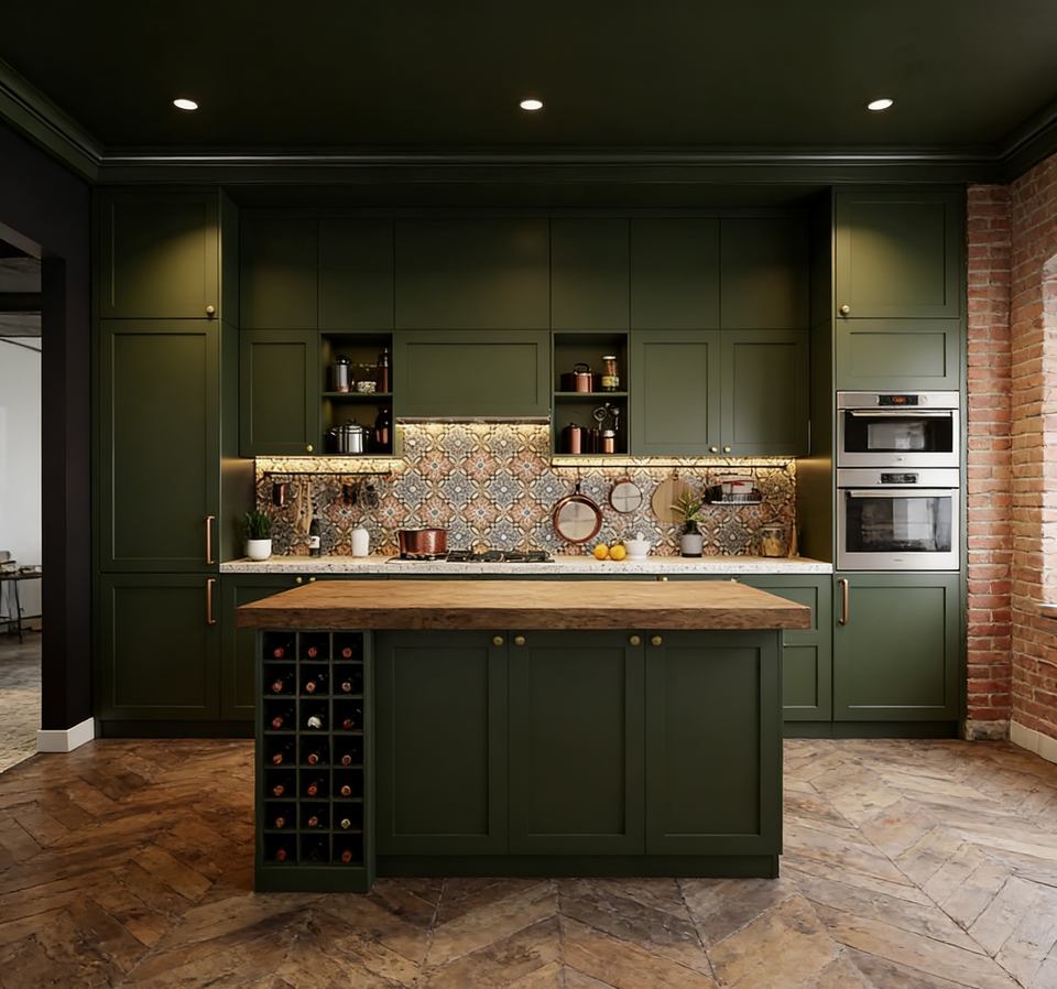 Acabado de Puerta:Alto Brillo\Membrana de PVC\Madera Maciza/Verde Musgo