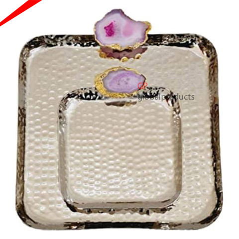 Bandeja rectangular de mármol de ágata con asas doradas, bandeja de servicio para decoración de restaurantes y hoteles, el diseño más atractivo