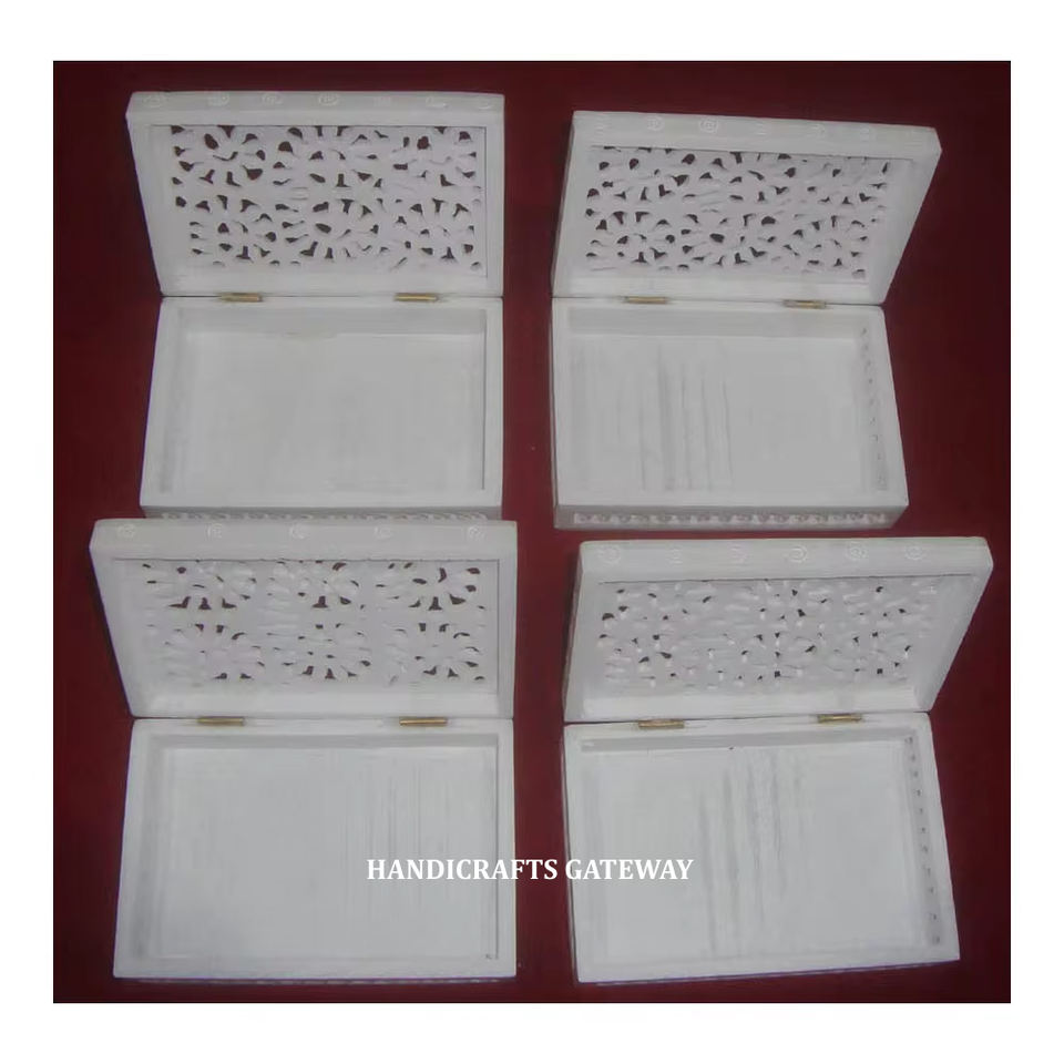 Caja de joyería tallada a mano de forma Rectangular de mármol blanco Natural más atractiva acabado fino para caja de propósito de regalo de negocios