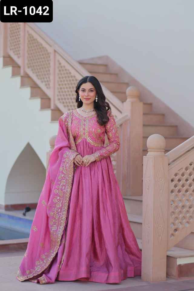 Los vestidos de Material Gold Crush de manga larga de estilo Anarkali más hermosos para colecciones de ropa de función de boda y Festival