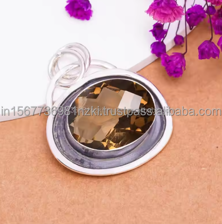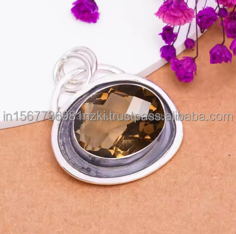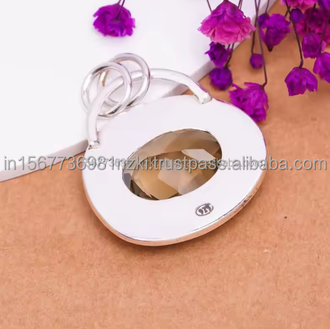 Nombre del producto:Colgante de plata esterlina 925 con cuarzo ahumado