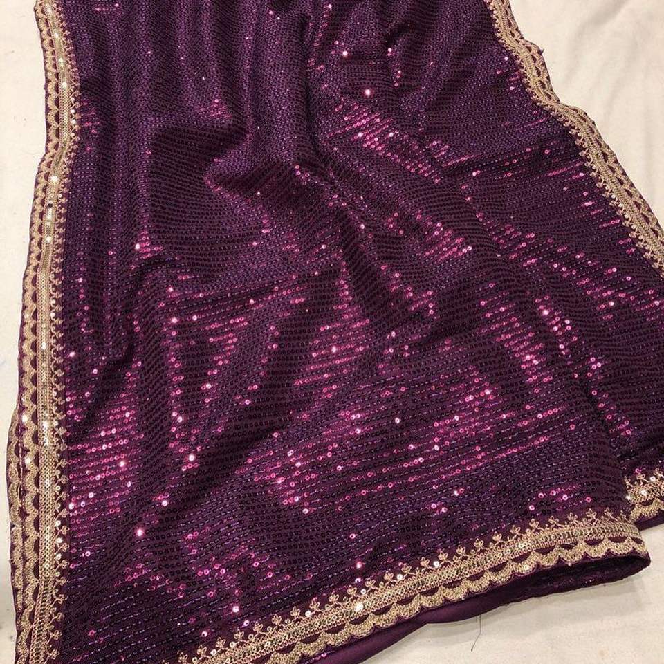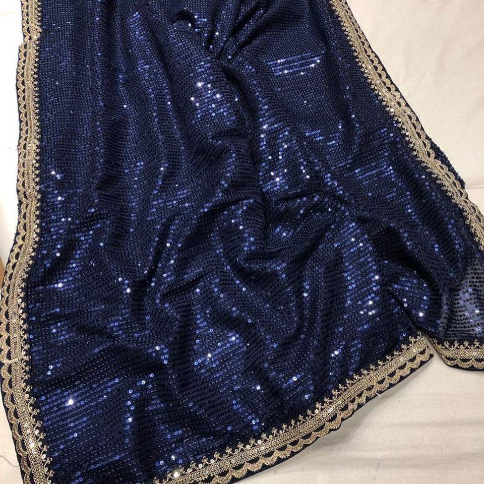 Georgette-saree de trabajo de secuencia pesada para mujer, ropa India bonita y atractiva con blusa, barata, precio bajo, venta al por mayor
