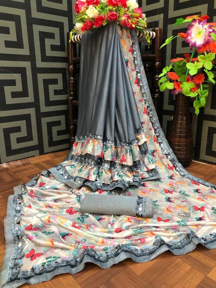 La más hermosa y atractiva ropa de fiesta Rifa Impreso Saree con pieza de blusa Ropa de mujer India Precio bajo Venta al por mayor Étnico