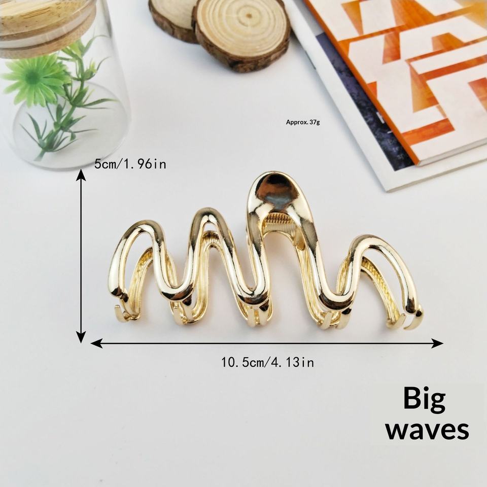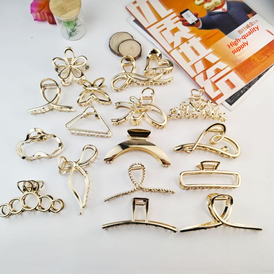 Juego Completo de Pinzas para el Cabello Casuales Chapadas en Oro de Aleación, Diseño de Punto Elíptico/Ondulado, Pinzas de Garra para la Cabeza con Diseño de Espalda de Tiburón, Venta al por Mayor