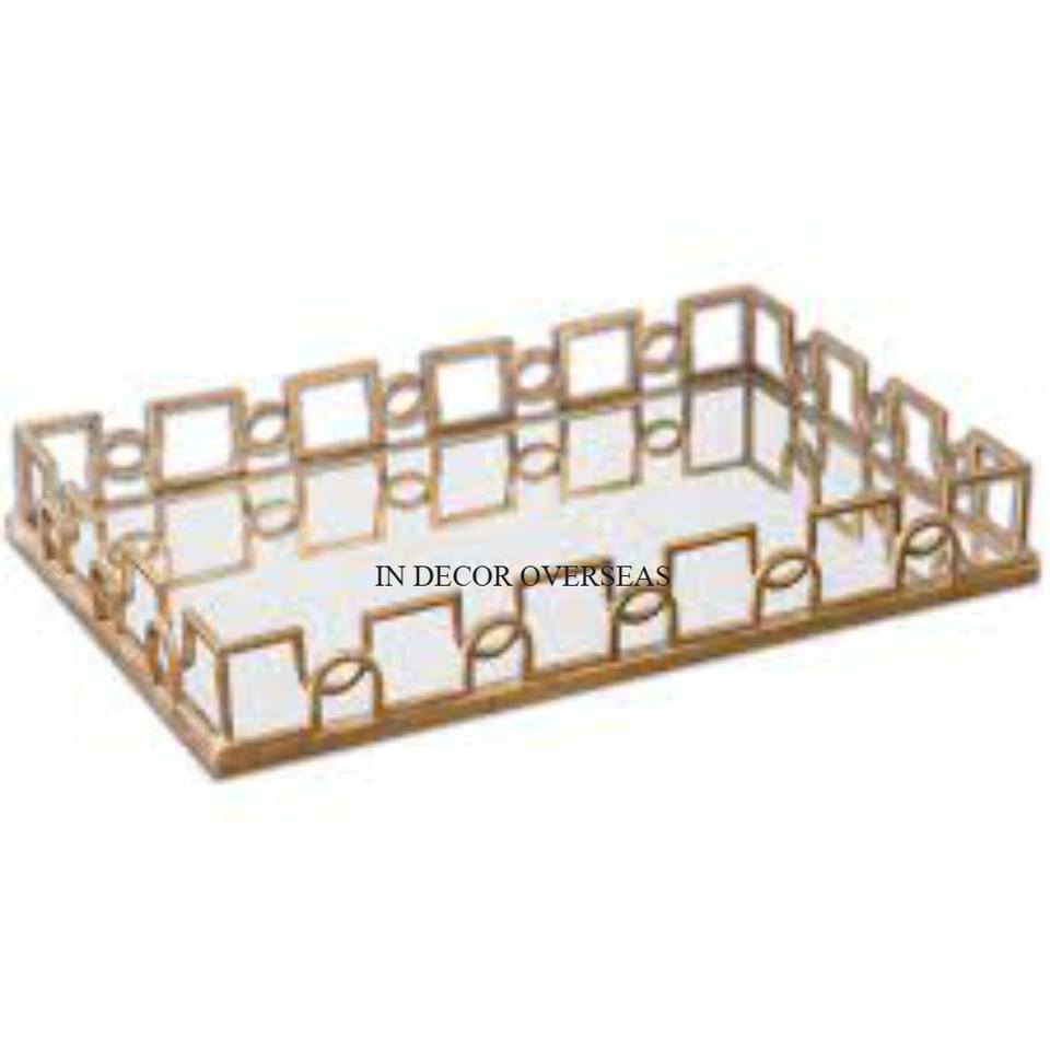 Bandeja DE SERVICIO DE ESPEJO enmarcado chapado en oro con forma de rectángulo más exigente, accesorios de centro de mesa de café para Hotel y restaurante
