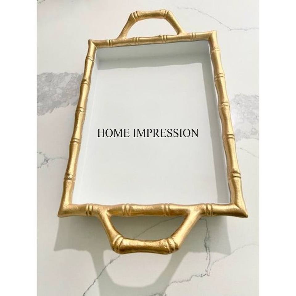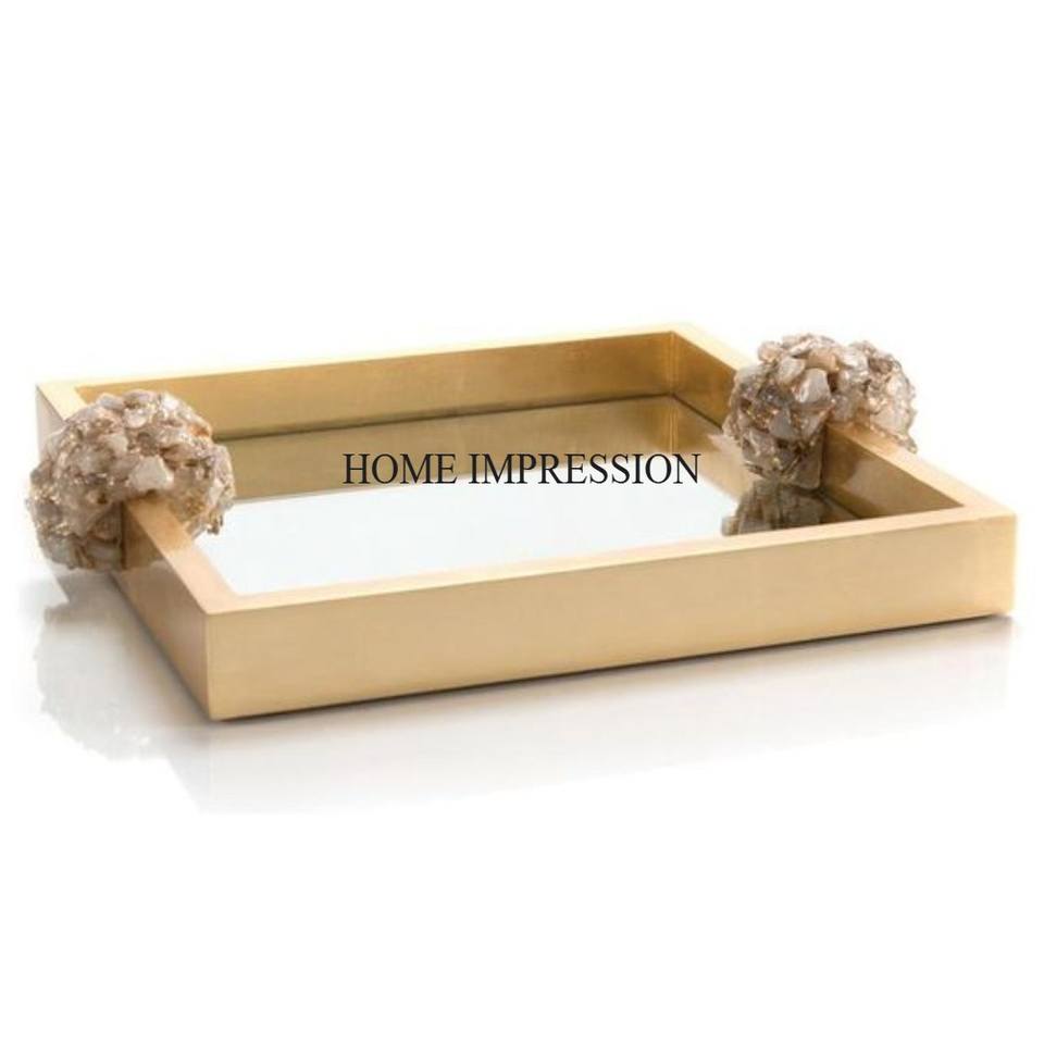 Bandeja de servicio de metal de calidad superior chapada en oro de alta calidad de diseñador único más elegante con asas de aspecto atractivo de la India