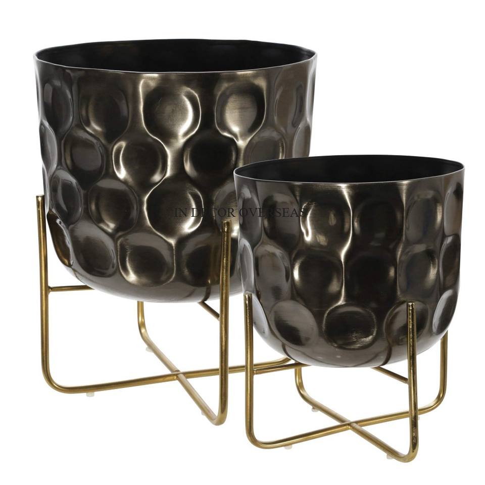 Maceta de Metal de forma redonda grande chapada en oro de alta calidad de diseñador único más elegante para suministros de accesorios de decoración de jardín