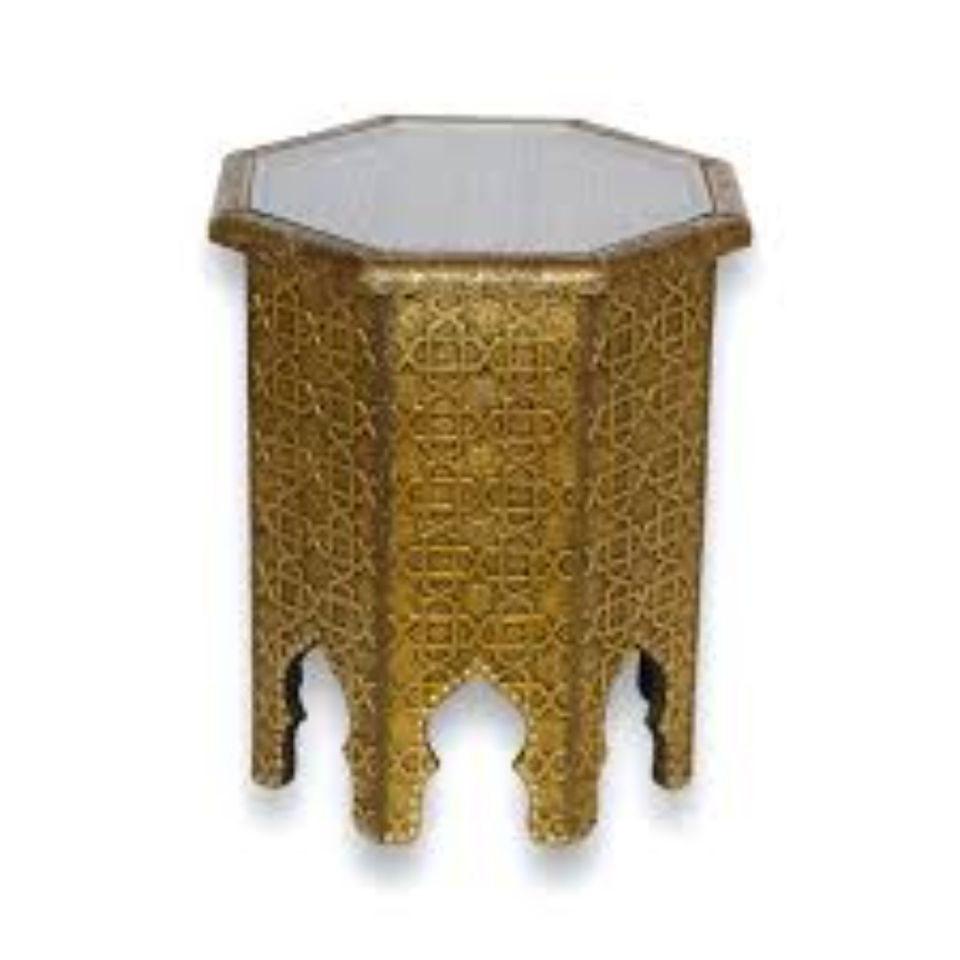Mesa Marroquí de Lujo para Sala de Estar, Diseño Único y Elegante, Chapada en Oro de Alta Calidad, Fabricada en Metal de Alto Estándar para el Hogar y Hoteles