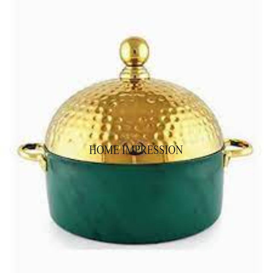 Cazuela de metal chapado en oro de alta calidad hecha de metal de primera calidad de diseñador único más elegante con tapa superior pulida brillante plateada