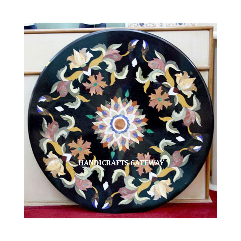 La obra de arte con incrustaciones más gloriosa y precio muy genuino de mesas con incrustaciones de mármol negro hechas a mano de forma redonda con decoración de comedor