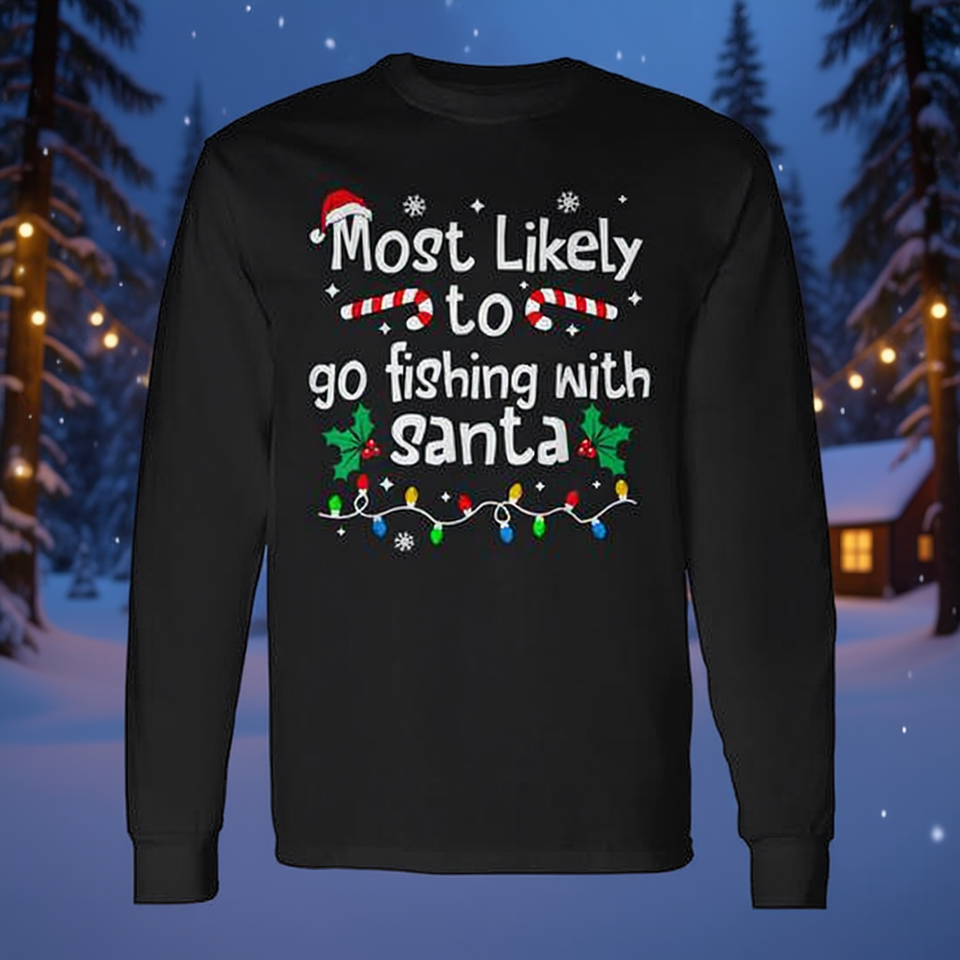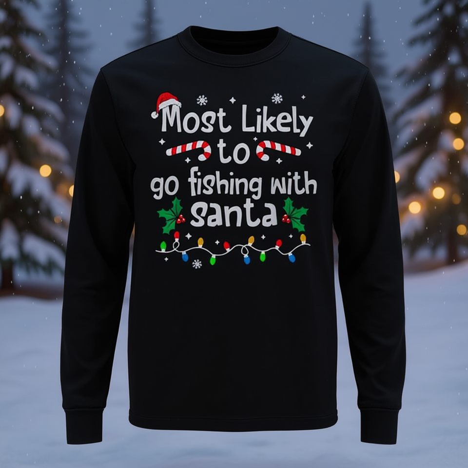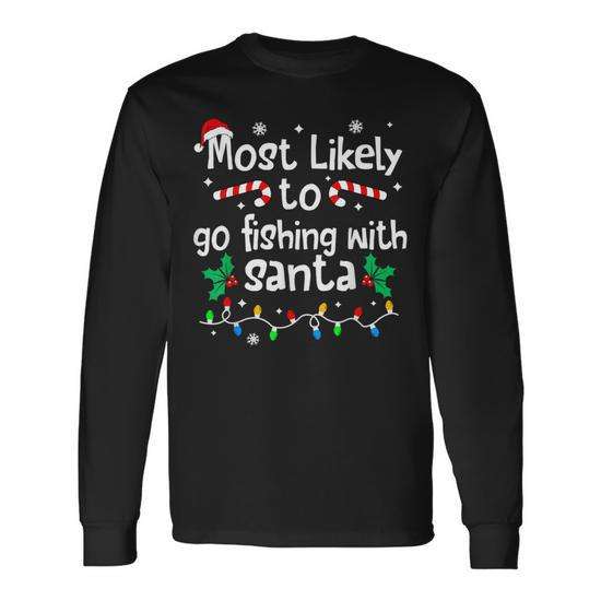 Camiseta de manga larga con estampado de Navidad y Santa Claus, ideal para ir de pesca