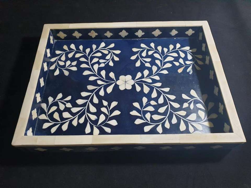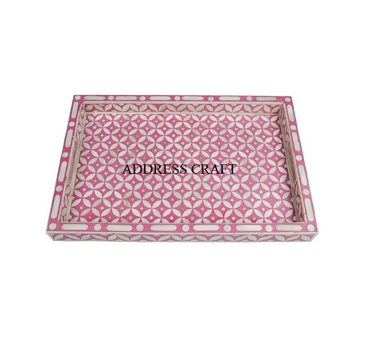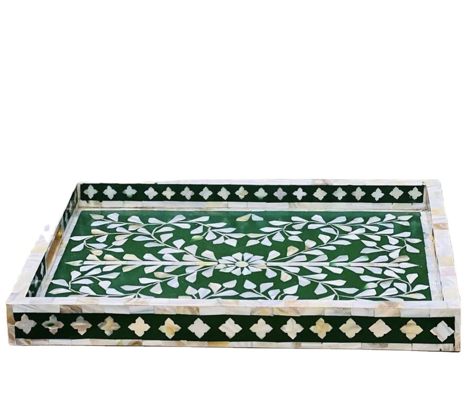 Bandeja de Servicio Rectangular Ecológica con Incrustaciones de Nácar, Estilo Árabe, para Hogar, Hotel, Bodas, Eid, Ramadán