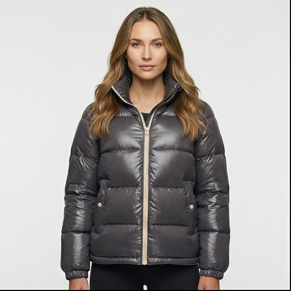 La chaqueta acolchada personalizada más popular en la mujer con decoración de bolso y botón, chaqueta de burbujas, moda para hombre