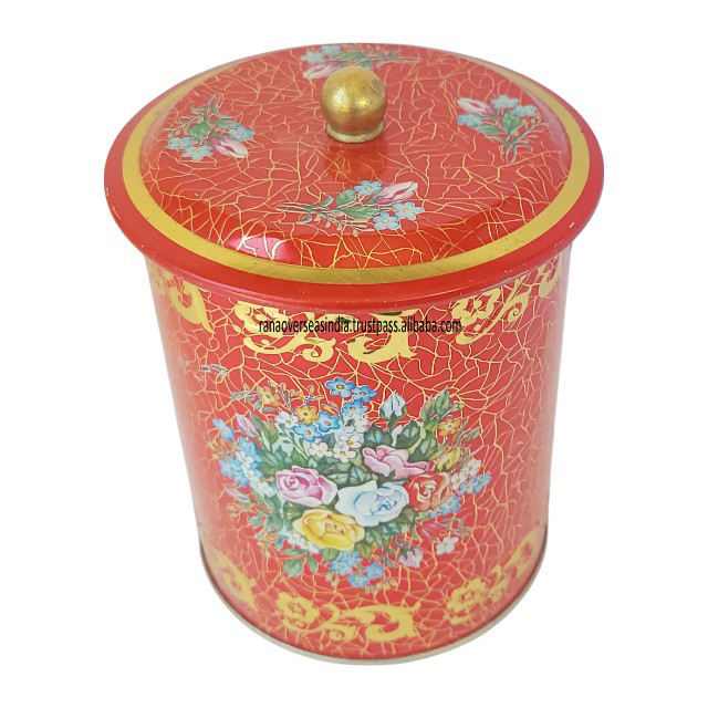 Nombre del producto:Caja de metal de té floral rojo de lujo más popular con tapa