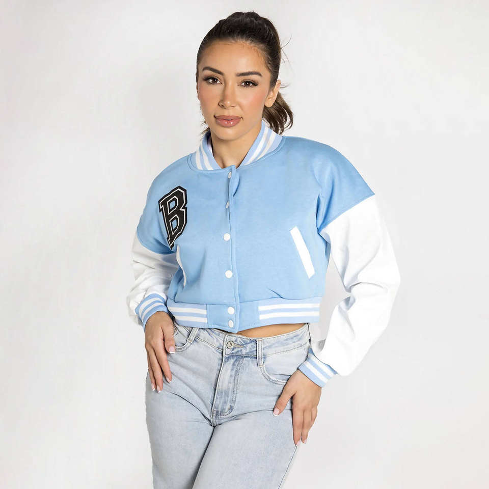 Nuevo diseño más popular, demanda personalizada, moda 2025, chaquetas de béisbol universitarias cortas para mujer a la venta