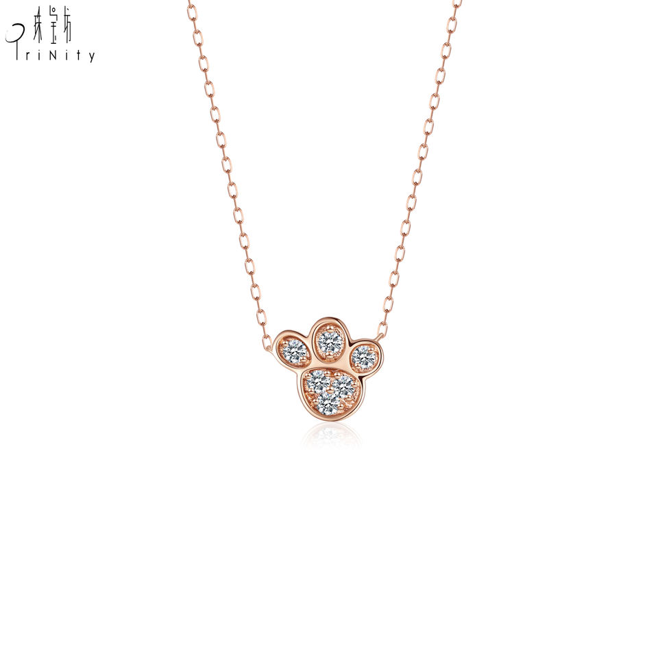 Product name:Cute Paw Design 18K Solid Rose Gold Natural Diamond Pendant Necklace