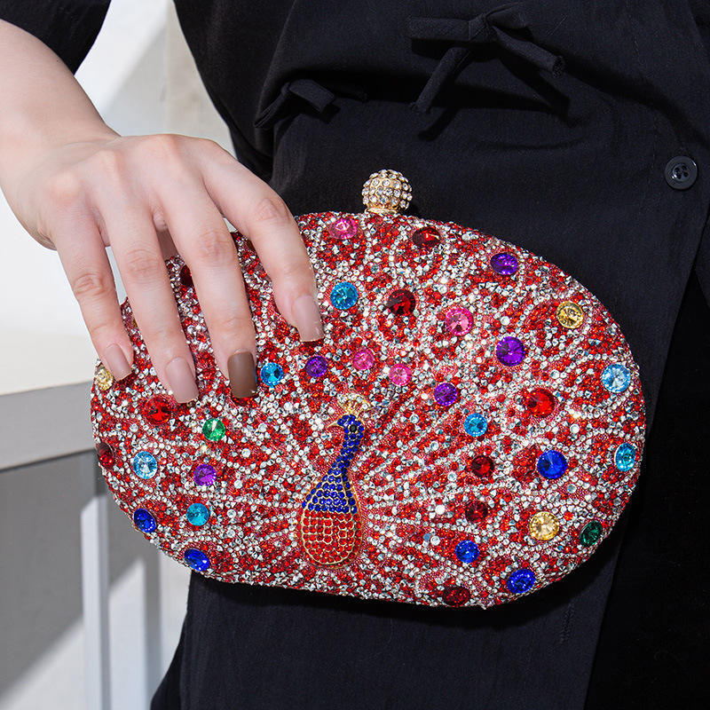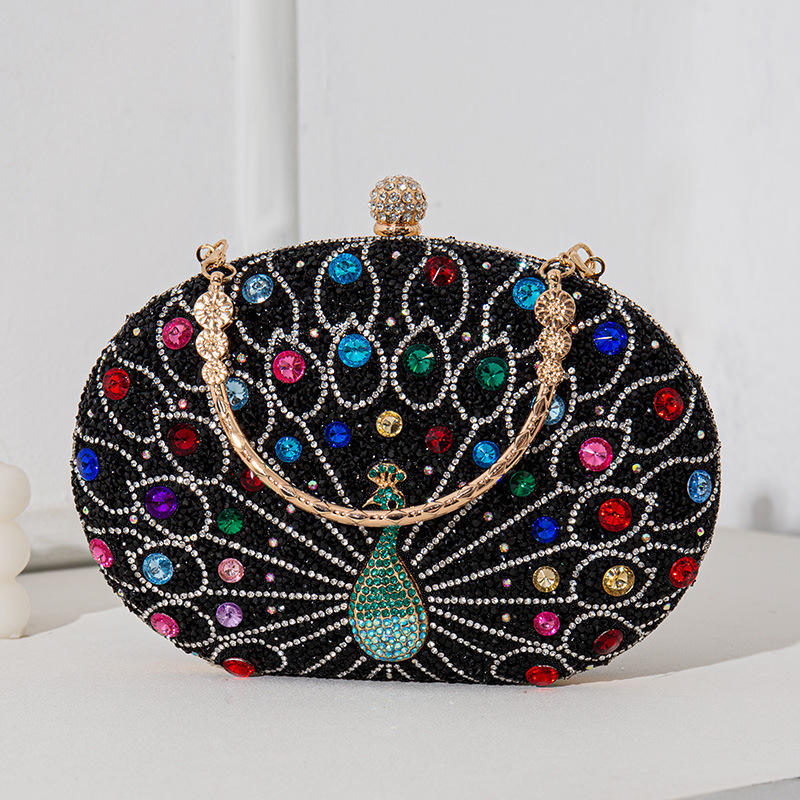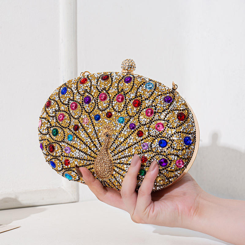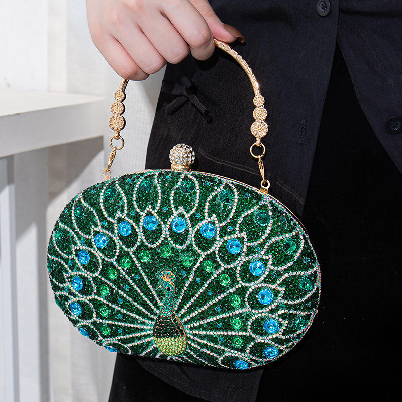 Monedero más Popular Vintage para mujer, bandolera con cadena, cena, fiesta, banquete, diamantes de imitación, bolso de mano de pavo real, bolsos de noche