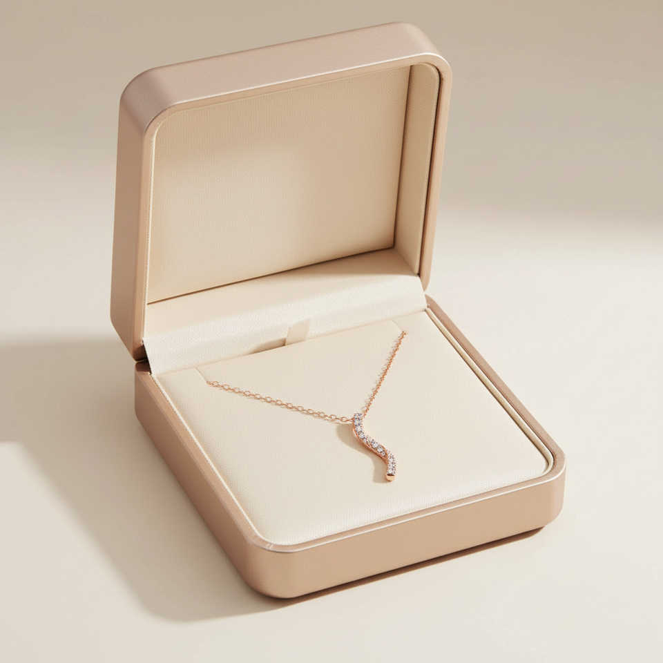 Collar con colgante de diamante natural auténtico en oro rosa macizo de 18 quilates, diseño curvo simple y elegante, joyería fina, el más popular, para mujer, regalo.