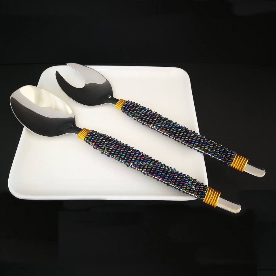 El juego de servidor de ensalada de acero inoxidable más Popular, herramientas de cocina con logotipo personalizado, juego de cuchara, tenedor, herramientas para ensalada, regalo de inauguración de la casa