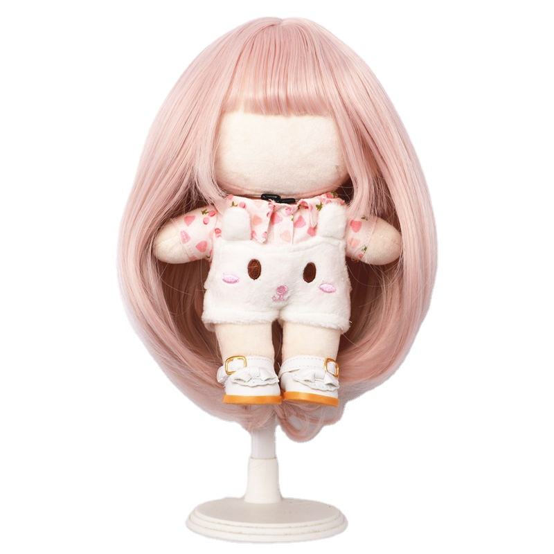 Las más populares pelucas de muñeca de pelo liso y sedoso resistente de 20cm de color rosa dulce para muñeca americana de 33-36cm