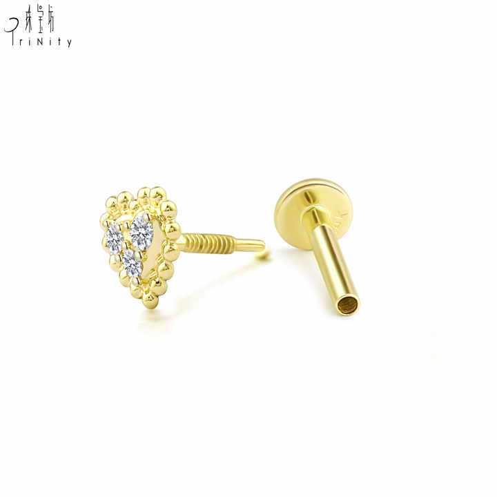 Pendientes de diseño moderno y popular en forma de corazón, oro sólido de 14K, diamante natural, pendiente individual, joyería fina para regalo de mujer