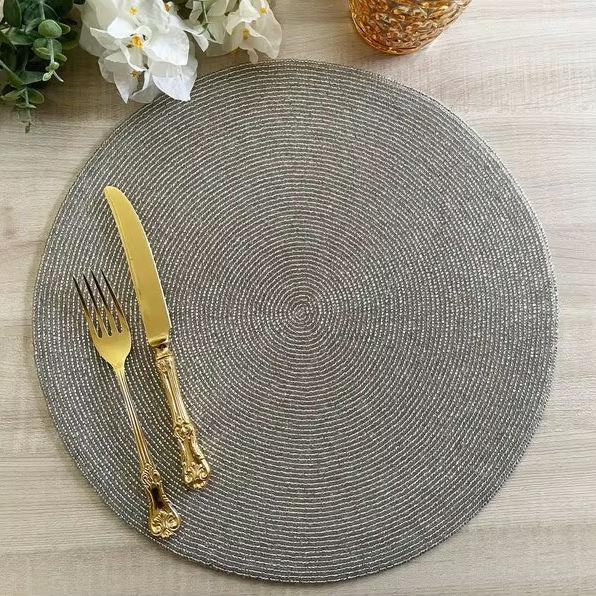Mantel Individual Bordado con Cuentas, Diseño Único de Mariposas, Color Negro y Dorado, a Precio Reducido