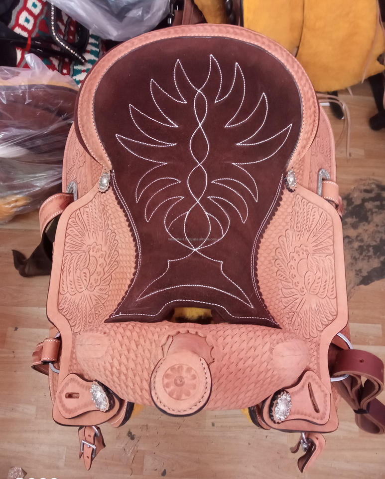 Nombre del producto:Hecho a mano de cuero genuino Western Pleasure Trail Riding silla