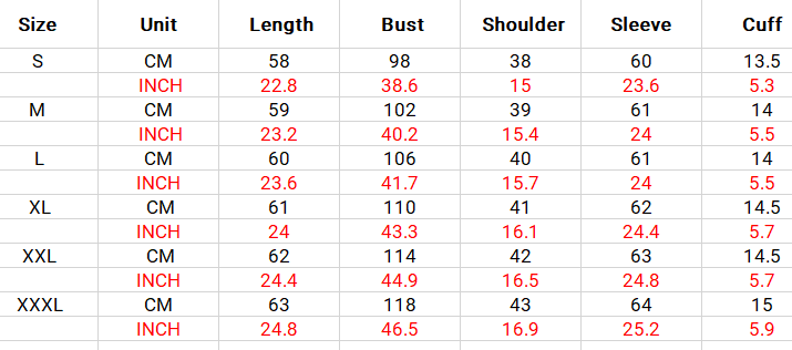 Tamaño:S-M-L-XL-2XL-3XL-4XL-5XL-6XL