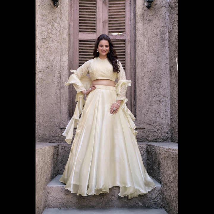 Lehenga Choli de diseñador más vendido, de manga larga, color marfil, con adornos de alta calidad con cuentas y perlas para ocasiones especiales, proveedor de la India