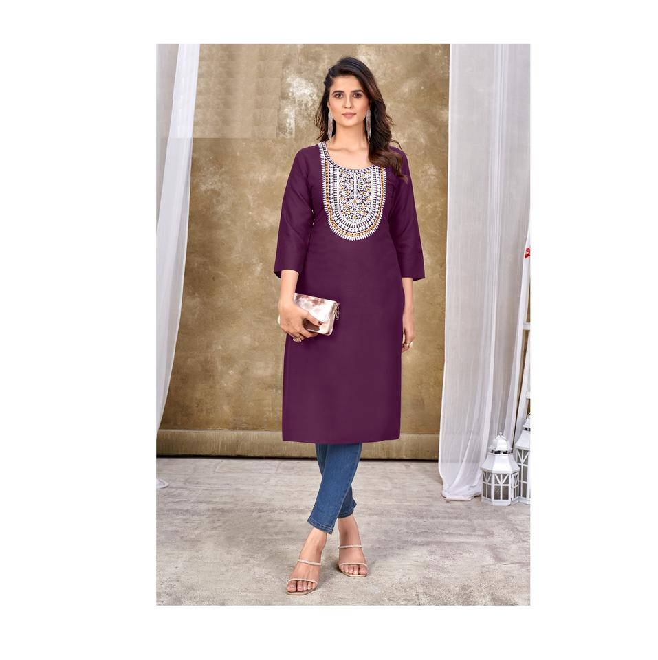 Kurtis bordados de rayón de lujo más vendidos para oficina y uso regular a precio mayorista vestidos casuales Kurti