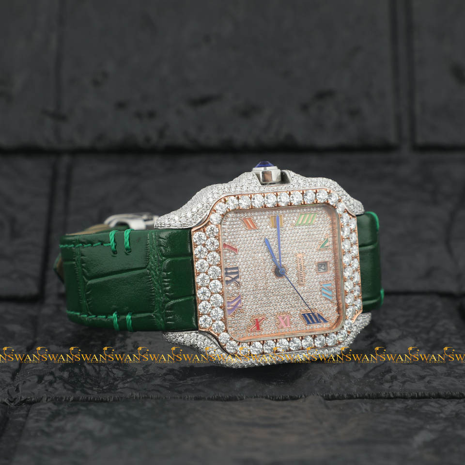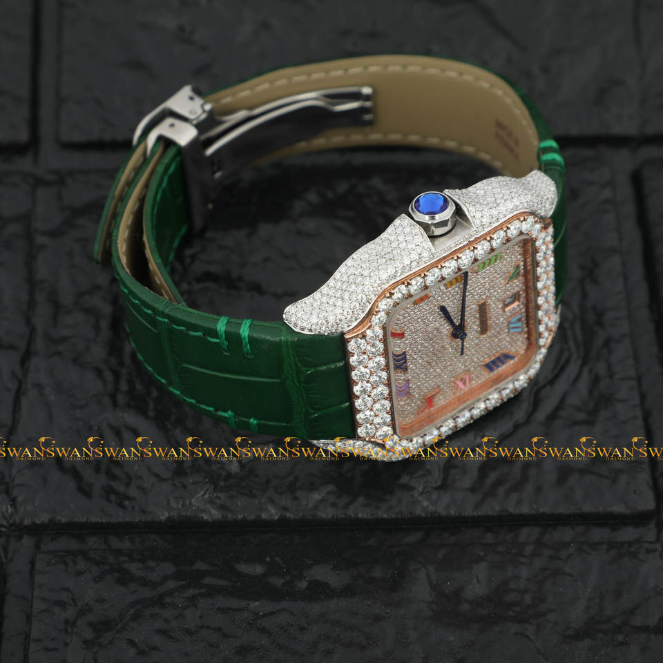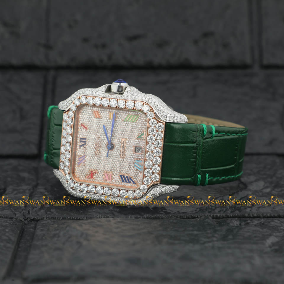 Reloj analógico deportivo más Popular, cristal totalmente helado, moissanita, diamante, forma cuadrada, árabe, caja de acero inoxidable, cuero