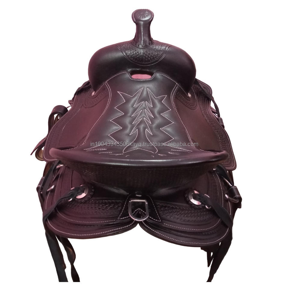 Sillín de carreras hecho a mano más vendido 100% cuero de vaca Western Pleasure Trail Riding Saddle con juego de tachuelas al por mayor a granel