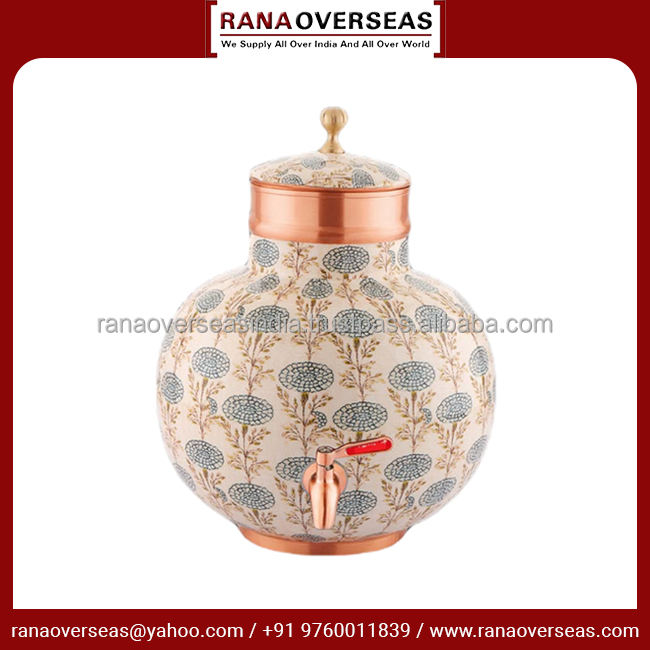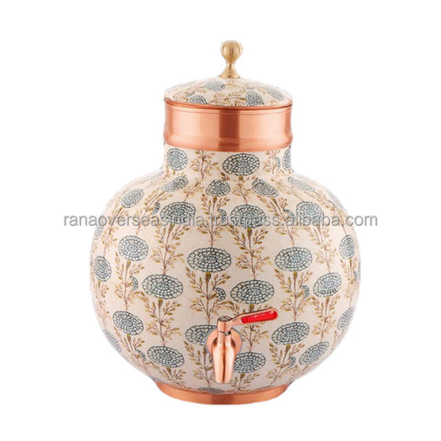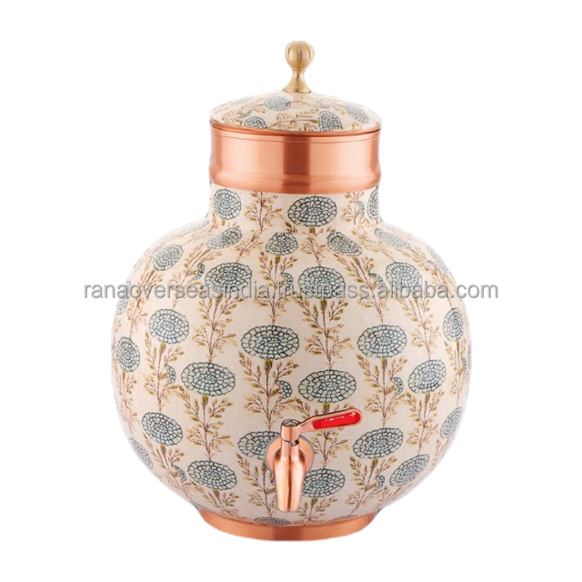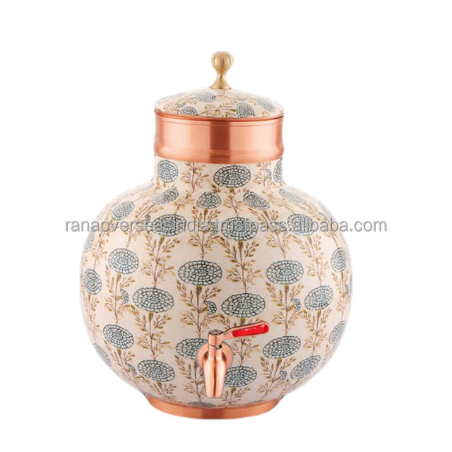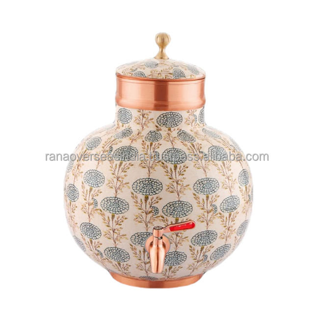 Tanque de almacenamiento de agua de cobre puro de alta calidad más vendido con diseño impreso de esmalte floral en dos tonos al mejor precio